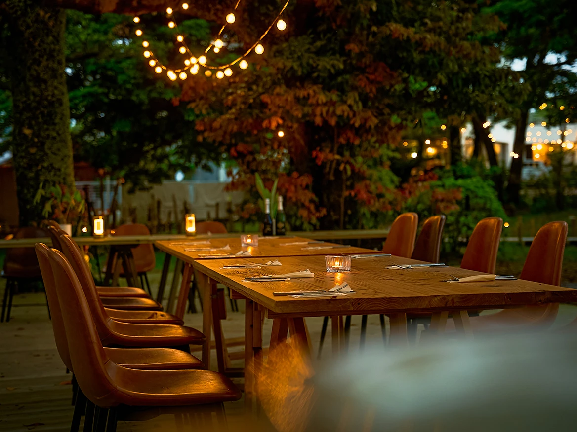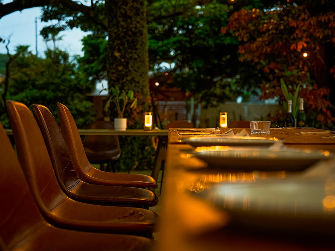 青島ピクニッククラブを象徴する、長い年月この土地を見守ってきたタブの大木。この場所が持つ特別な空気感を、最も心地よい形で体験してほしいという想いから「タブの森」のアウトドアダイニングは誕生しました。シェフが腕によりをかけた料理の温度、森の香り、そして自然が織りなす空間演出。そのすべてが調和した時、ここでしか味わえない深く静かな感動が生まれます。