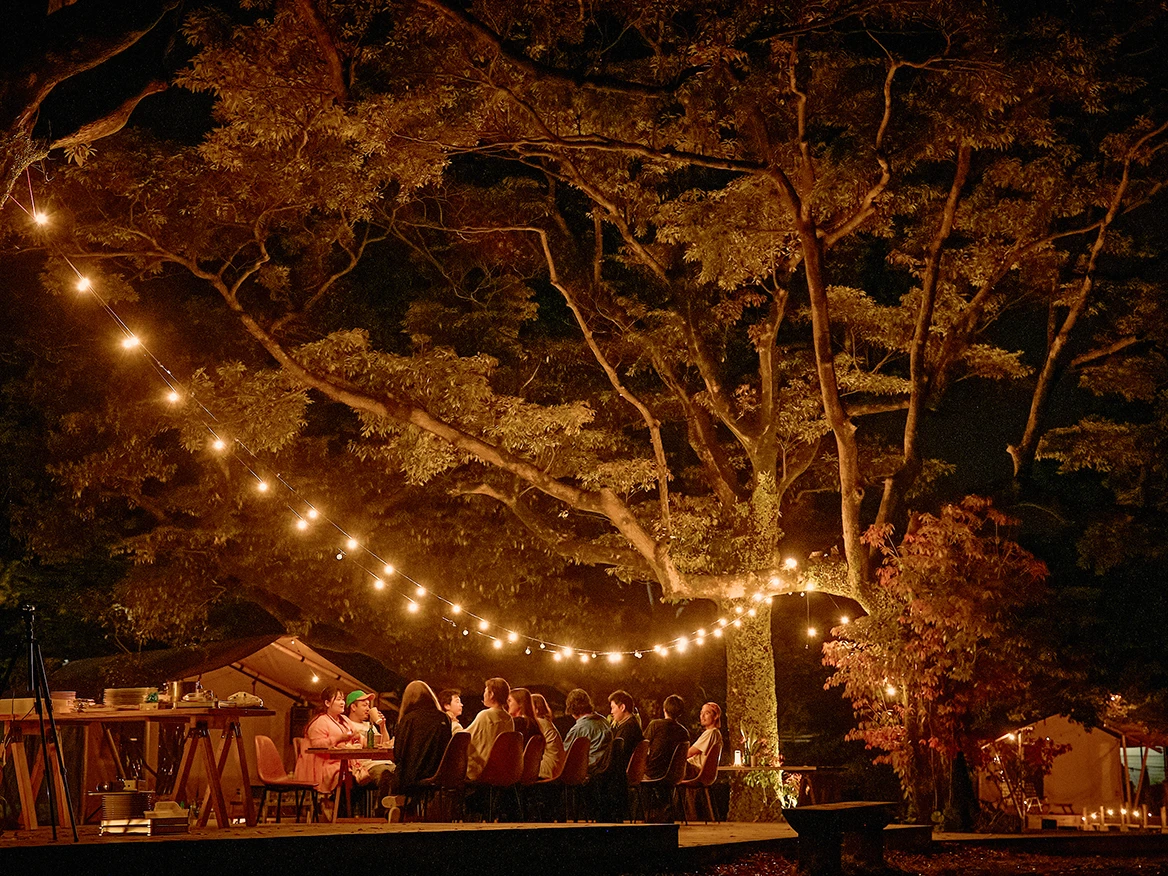 都会の喧騒から遠く離れ、青島の海風が森の木々を優しく揺らす頃。樹齢を重ねた生命力あふれる「タブの木」の下で、あなただけの特別な時間が幕を開けます。風にそよぐ葉擦れの音をBGMに、木漏れ日やランタンの柔らかな光に包まれながら、宮崎の豊かな大地が育んだ恵みをいただく。それは、単なる食事ではなく、自然と深く溶け合い、日々の緊張から心身を解き放つための、美しくもオーガニックなひとときです。